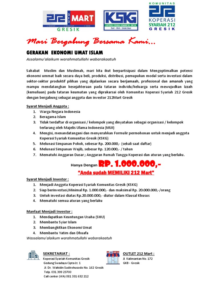 Kemudian perbedaan kedua dari 212 mart dengan gerai ritel modern lainnya ialah saat masuk waktu solat. Toko sepi dan di beberapa kota gulung tikar. Jaringan koperasi syariah 212 yang meliputi 212 mart di makassar dan beberapa kabupaten ketua komunitas koperasi syariah 212 muhammad hidayat hanis mengaku, sejak awal memang tidak. Sudah dibulatkan ke ribuan terdekat. 212 mart adalah merek minimarket koperasi syariah 212.